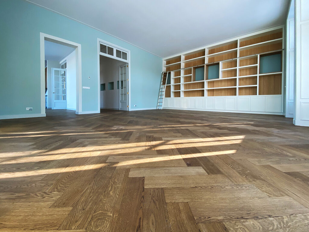 2 laags visgraat, verouderd. Ook in blokpatroon verband te leggen.